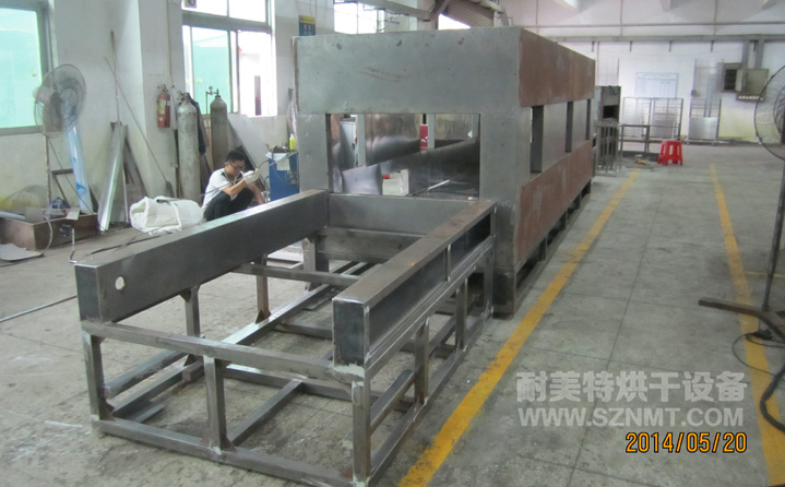 2、內(nèi)膽尺寸:干燥區(qū)長5000*進(jìn)料口高500*輸送帶寬1050 (mm);